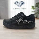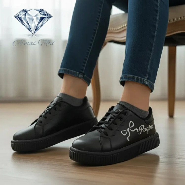 این کفش زنانه با طراحی جسورانه و مینیمال، یک انتخاب عالی برای تکمیل استایلهای روزمره شماست. رنگ مشکی کامل این کفش، ظاهری شیک و همهکاره به آن بخشیده است، در حالی که جزئیات منحصر به فرد، آن را از سایر مدلها متمایز میکند.در کنار کفش، یک طرح پاپیون گلدوزی دوخته شده با نخ سفید متضاد قرار دارد که این تضاد رنگی سفید بر روی مشکی، جلوه خاصی به محصول میبخشد.لبه بالایی کفش در قسمت بندها، با طرح موجدار و بسیار ظریف اجرا شده که امضای طراحی این مدل است و حس لطافت را به استایل اسپرت اضافه میکند.زیره کفش نیز کاملاً مشکی بوده و دارای طراحی ضخیم است که علاوه بر افزایش قد، راحتی بیشتری را فراهم میآورد. رویه کفش از چرم مصنوعی درجه یک ساخته شده که مقاومت خوبی در برابر رطوبت داشته و به راحتی تمیز میشود. آستر داخلی نرم، مناسب استفاده طولانیمدت در طول روز است.